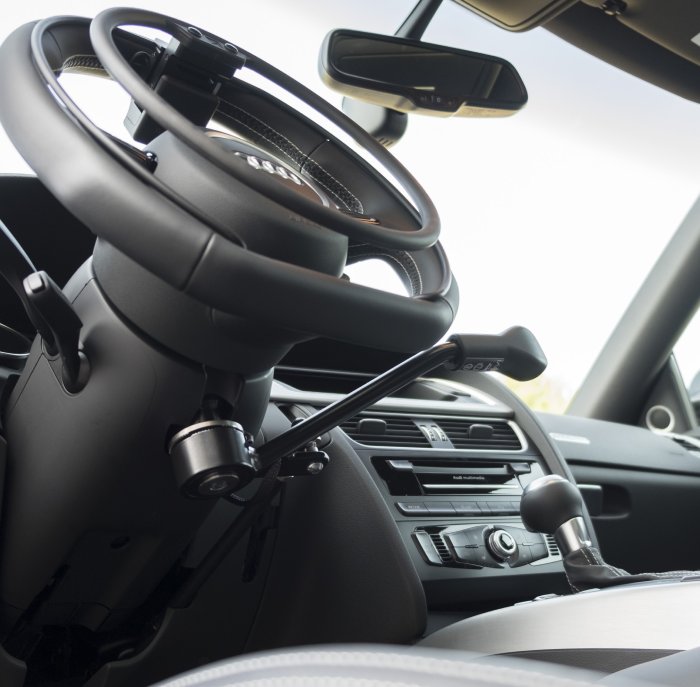 Questi dispositivi permettono la guida alle persone con parziale o totale perdita funzionale agli arti inferiori. Possono essere installati su autoveicoli dotati di cambio automatico, di cambio sequenziale al volante o equipaggiati di frizione automatica. L’impugnatura delle leve freno è costituita da un pomello che non trasmette sensazione di calore o freddo alla mano. In esso sono integrati 3 pulsanti, per l’azionamento del clacson, del blocco freno e dell’economizzatore. Sono installabili sia a destra che a sinistra del volante